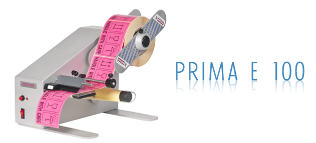Elektrischer Etikettenspender Prima E 100 Die Modelle der PRIMA E-Serie sind halbautomatische Spender für selbstklebende Etiketten auf Rollen. Sie sind robust gefertigt, einfach zu bedienen und flexibel geeignet für jede Art von Endlosetiketten auf Trägerpapier. Der Rollenhalter kann für jeden Rollenkern von Ø 38-110 mm verwendet werden und nimmt maximale Außendurchmesser von bis zu 300mm auf. Zwei intelligente Sensoren dienen der Etikettenabtastung. Eine Teachfunktion (Kalibrierung) erkennt den Unterschied zwischen der Transparenz des Trägerpapiers und dem Etikett. Das Etikett wird über die feststehende Spendekante hinaus soweit vom Trägerpapier abgelöst, dass es manuell leicht zu entnehmen ist. Mit der Entnahme wird automatisch das nächste Etikett vorgespendet. Im Anschluss wird das Trägerpapier wieder aufgewickelt. Das Zusammenspiel von integrierter Steuerung und motorischem Antrieb gewährleistet einen stets gleich bleibenden Spendeprozess. Geht die Etikettenrolle zu Ende oder ist das Etikettenmaterial stark beschädigt, stoppt der Spender mit einem Warnsignal. Eine elektromechanische Abtastung für transparente Etiketten und ein Zähler sind optional erhältlich.